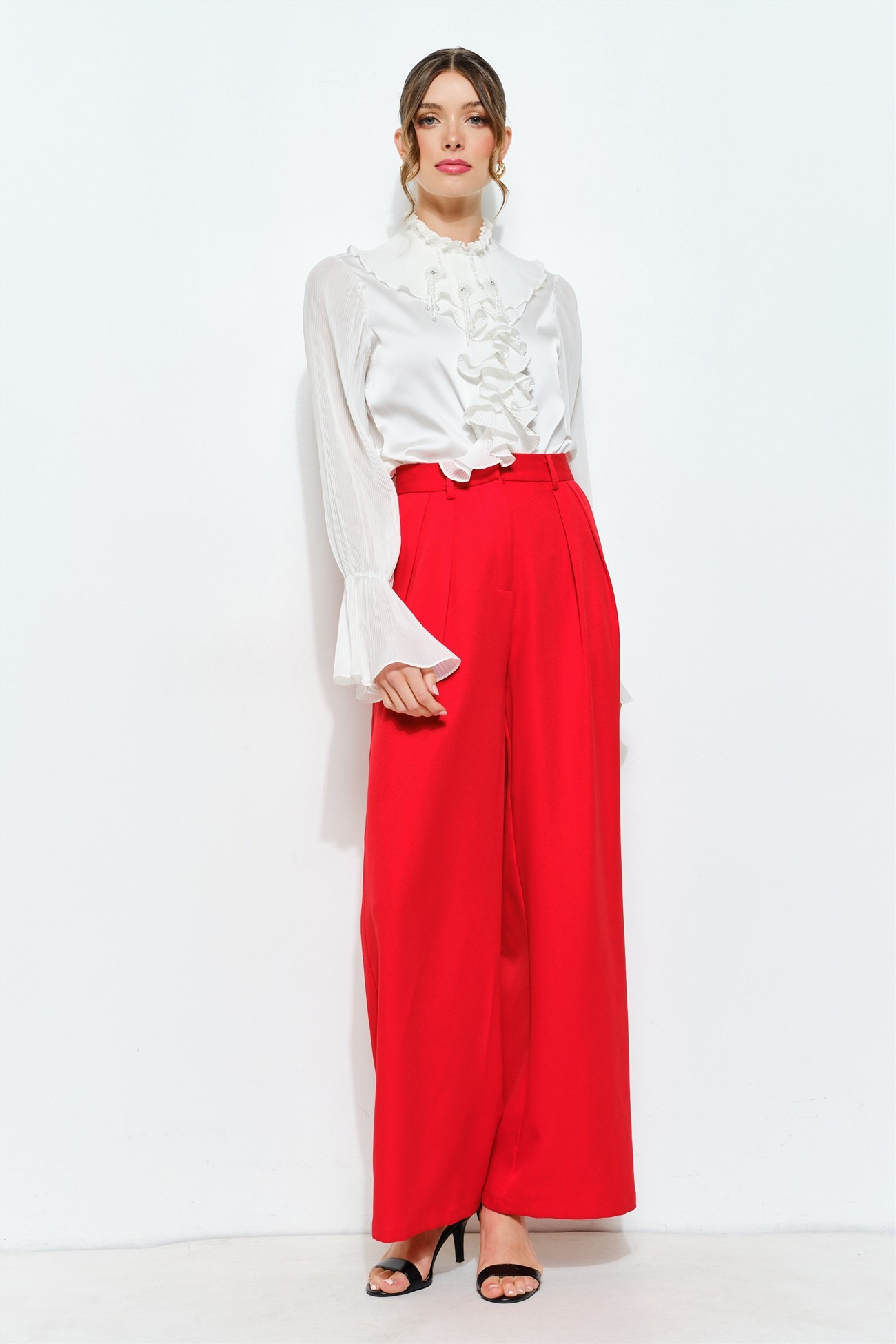 Pantalón tipo trouser en rojo vibrante. Una pieza perfecta para darle un pop de color a tu clóset.