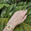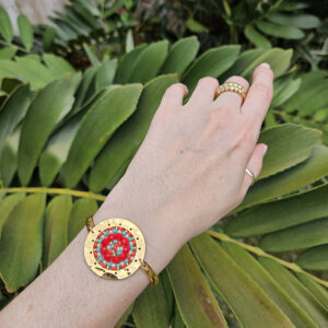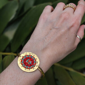 Pulsera media caña con medallón tipo mandala grande. Hecho en Panamá
